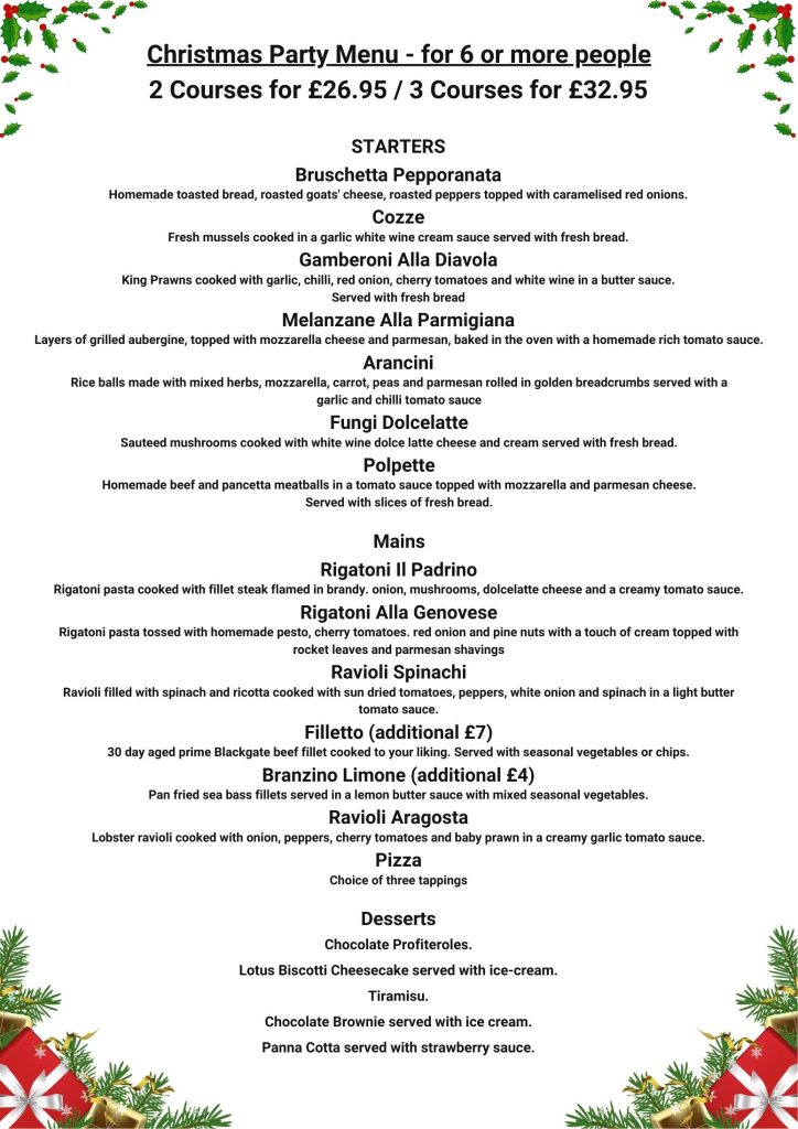 Christmas Party Menu